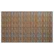 Fabric with a tiled artwork of a Horseshoe and Blue Feathers with a brown background.