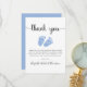 Cute thank you card for your baby boy shower with "thank you!" in a stylish script with swashes and a blue watercolor of baby feet. Underneath you can easily personalise your thank you message or leave blank for a handwritten note.