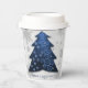 Sip your favourite Christmas time beverages with a festive set Blue Festive Christmas Tree Paper Cups. Paper cup design features a vibrant and festive Christmas tree adorned with falling grey and white snowflakes with a holiday greeting. Additional gift and holiday items available with this design as well.