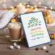 Blue Festive Multilingual Merry Christmas and Tree Holiday Card