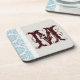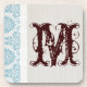 Blue Filigree Damask White Grey Swirly Design Paper Texture Paper-Texture Monogram Initial Drink Coaster Personalised