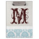Blue Filigree Damask White Grey Swirly Design Paper Texture Paper-Texture Monogram Initial Clip Board Personalised