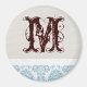 Blue Filigree Damask White Grey Swirly Design Paper Texture Paper-Texture Monogram Initial Kitchen Magnet Personalised