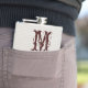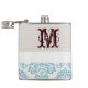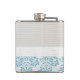Blue Filigree Damask Monogram Whiskey Flask