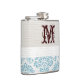 Blue Filigree Damask White Grey Swirly Design Paper Texture Paper-Texture Monogram Initial Whiskey Flask Personalised