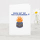 A birthday cake full of flaming candles and blue text that reads "Break Out the Fire Extinguishers!" on humourous birthday T-shirts, cards, mugs, and more.
