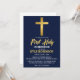 Celebrate your child's special day with these stylish and sophisticated first communion invitations. Featuring a beautiful navy blue watercolor background, a delicate cross design, and a touch of gold foil, these invitations are perfect for a modern, elegant celebration. The design is customisable to match your event's theme and colour palette.