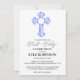 Celebrate your child's special day with these stylish and sophisticated first communion invitations. Featuring a beautiful navy blue watercolor background, a delicate cross design, and a touch of gold foil, these invitations are perfect for a modern, elegant celebration. The design is customisable to match your event's theme and colour palette.