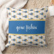 Cute throw pillow with blue fish for the beach or lake house, with the following text: "gone fishin' "