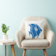 part of the ocean themed kid's pillow decor blue fish on white PILLOW on one side and blue and white strip on back.