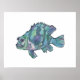 Decorate your kids room with this cartoon fish sparkly blue grouper. Makes a fun colourful display as a fish poster or framed wall art. She's (or is she a he?) a funny fish, but also with an attitude.