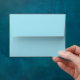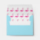 This is the coordinating envelope for the Blue Flamingo Beach Wedding RSVP. The outside of the envelope is decorated with a beautiful shade of bright blue, and the inside is further enhanced with lots of fun pink flamingos, making it perfect for any summery party.