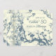 Fiftieth wedding anniversary invitation in elegant blue and beige with delicate flowering tree pattern. Customisable with your party details.