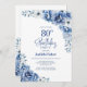Blue Floral 80th Birthday Party Invitation