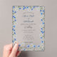 A modern acrylic wedding invitation featuring elegant blue floral artwork. The transparent layout and refined typography make it ideal for stylish spring or garden weddings.