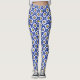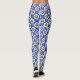 Leggings with An Arabic Pattern of flowers illustrated in Blue, White, and Yellow.