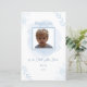 Celebrate your child’s special day with this refined baptism Menu. Featuring a serene blue floral border and a soft watercolor background, this design conveys a sense of peace and spirituality. The centerpiece is your child’s photo, framed beautifully with clean lines, while the text is elegantly presented in a mix of classic serif and modern script fonts. Perfect for parents seeking a timeless and heartfelt invitation to mark this sacred occasion.