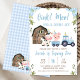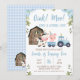 Blue Floral Barn Tractor Farm Birthday Invitation