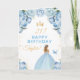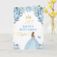 Blue Floral Blonde Hair Girl Happy Birthday Card