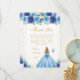 Blue Floral Blonde Hair Princess Sweet Sixteen Thank You Card