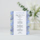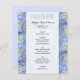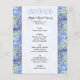 Affordable wedding or bridal shower luncheon menu template with pale blue hydrangea flower border. Smaller, 4x5 inch paper, is affordable and pretty. Easily customise the title in periwinkle blue, and the remaining black text with all menu items.