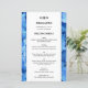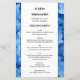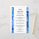 Blue floral border wedding menu template. Three letter monogram at the top with black text for the menu list.
