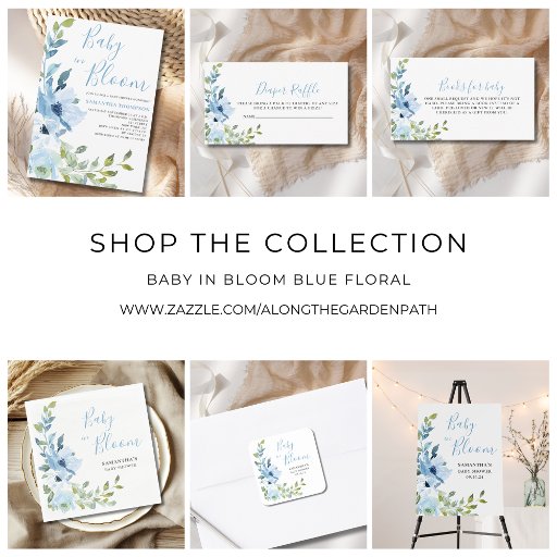 Blue floral boy baby in bloom shower card gifts pedestal sign. Easy to change the text. Pretty watercolor floral for baby boy.
