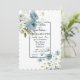 A pretty blue floral bridal shower invitation with all the details enclosed in a small blue frame.