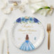 Blue Floral Brown Hair Princess Sweet Sixteen Paper Plate