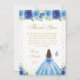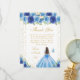 Blue Floral Brunette Hair Princess Birthday Party Thank You Card