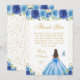 This elegant and glamorous birthday thank you card features a beautiful princess with brunette hair and fair skin in a blue ball gown. The text combines handwritten script and modern sans serif fonts for a classy and sophisticated look. The floral arrangements, butterflies and gold confetti create the perfect blend of rustic and chic.