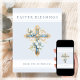 Blue Floral Cross Religious Easter Blessings Holiday Card