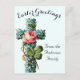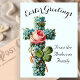 A pretty reproduction of a floral cross vintage Easter card, it has been edited to clean the image up, and it has a reproduction of a vintage postcard on the back so that you can write a message. Send it in the mail or give it with an Easter gift. This is a pretty choice for a religious greeting. Customise the message on the front of the card using the editing tool in the listing to personalise the family name.
