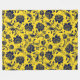 The elegant navy blue vintage floral damask pattern over the yellow customisable background.