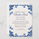 This Blue Floral Elegant Fiesta Spanish Wedding Invitation design features delicate blue floral and swirl motifs inspired by traditional Mexican Talavera pottery, arranged elegantly in the corners. The deep blue hues contrast beautifully against the soft, textured white background, creating a clean and refined look. Ideal for wedding invitations or formal event stationery, this design adds a touch of cultural charm and timeless elegance.