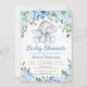Boy blue floral winter baby shower invitation with silver glitter sparkles