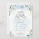 Blue Floral Elephant Baby Shower Invitation