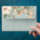 The front of the envelope features a watercolor wildflower bouquet frame set on a pale blue watercolor washed background. In the centre it reads "Kindly deliver to" in a green sans serif font There is a place to customise with your name and return address. The inside of the envelope has a colourful floral arrangement that coordinate with the front of the envelope. This envelope coordinates with the Anne of Green Gables collection.