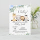 Blue Floral Eucalyptus Four Safari Baby Shower Invitation
