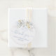 This product was just as I hoped it would be. I used these tags to go on the M&M favors for my brother and future SIL's bridal shower. An outline for the holes were already made in the tags, so I just needed to physically push the piece out to expose the holes in order to thread ribbon through. Overall, I am very happy with this product and would certainly order again if the occasion for these tags arises. The printing was perfect! The colors were just as pictured on the website.