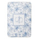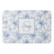 Blue Floral French Toile Monogram Name Bath Mat