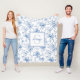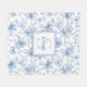 Blue Floral French Toile Monogram Name Fleece Blanket