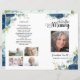 Beautiful and professional Funeral Program template with Blue floral Bakcground, easy to edit and print.