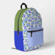 Blue watercolor florals pattern printed backpack with optional personalisation.