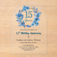 Blue Floral Gold Frame 15th Wedding Anniversary Acrylic Invitations