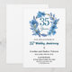 Blue Floral Gold Frame 35th Wedding Anniversary Invitation