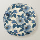 Blue Floral Gold Glitter Japanese Ukiyo-e Round Cushion