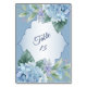 Blue Floral Green Leaves Frame Wedding Party Table Number