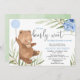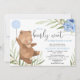 Blue floral greenery bear balloon boy baby shower invitation