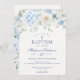Blue Floral Hydrangea Botanical Blooms Baptism Invitation